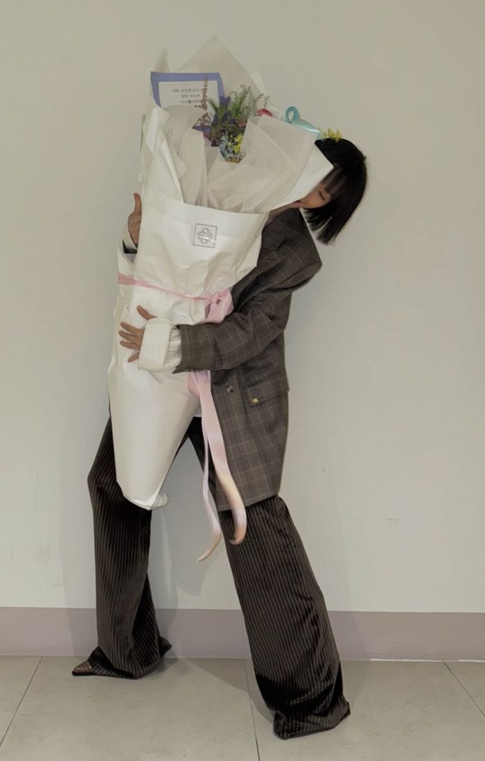 나나가 공개한 꽃다발 중 눈길을 끄는 것은 ‘절친’ 수지가 보낸 것으로 보이는 꽃다발이다. 키만큼 큰 큼직한 꽃다발을 힘겹게 드는 듯 포즈를 취한 나나는 꽃다발에 적힌 메시지도 공개했다.