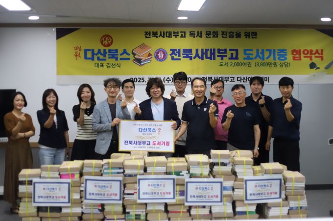 [서울=뉴스핌] 최문선 기자 = 전북사대부고 도서기증. [사진=다산북스] 2025.07.22 moonddo00@newspim.com |