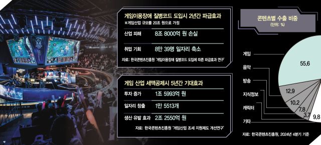 한국의 주력 수출산업인 게임이 신음하고 있다. 글로벌 경쟁 격화로 성장이 정체되는 상황에서 게임 이용 장애를 질병으로 낙인을 찍으려는 움직임 때문이다. 과학적 근거가 명확치 않은 상황에서 규제의 굴레에 혁신이 위축되고 인재가 해외로 유출되며 글로벌 4위 게임 강국인 한국의 경쟁력이 약화될 것이라는 목소리가 나온다. 게임은 1분기 15억 8187만 달러(약 2조 1636억 원)의 수출액을 올리며 음악·출판·영화 등 11개 분야를 포함한 국내 콘텐츠 산업에서 가장 큰 비중(51.1%)을 차지했다. 연 수출액이 10조 원이 넘는 알짜 산업이 정책적 지원은커녕 적대시되는 상황이다.