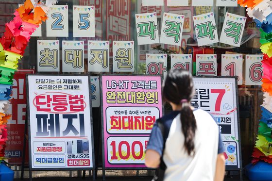 ‘이동통신단말장치 유통구조 개선에 관한 법률(이하 단통법)’ 폐지 첫날인 22일 오후 서울 용산 전자상가 휴대전화 유통점에서 만난 직원 A씨는 “단통법이 폐지된 덕에 신형 기종이 평소보다 훨씬 저렴하다”며 이같이 말했다. A씨는 “현재 사전 개통 중인 갤럭시Z 폴드7은 40만원에 개통할 수 있다”며 “단통법 폐지 이전엔 꿈도 꿀 수 없었던 가격”이라고 덧붙였다.