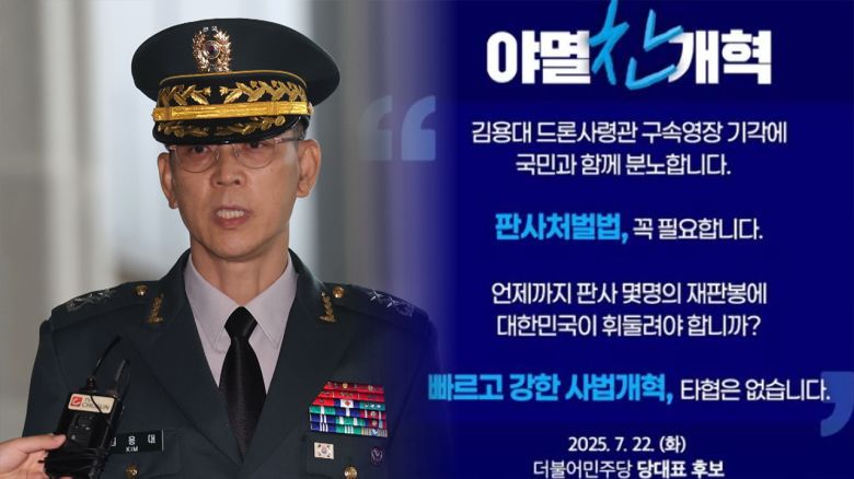 박찬대 더불어민주당 당 대표 후보자가 "판사 처벌법이 꼭 필요하다"고 주장했습니다. 김용대 드론 작전사령관의 구속영장이 기각되자 "국민과 함께 분노한다"며 자신의 페이스북에 적은 글입니다. 당 대표 선거 일정을 치르는 가운데 정청래 후보와 격차가 줄어들지 않자 선명성 경쟁에 나선 모습인데요. 영장 기각을 두고 여권에서도 "판사들이 윤석열 세력을 비호하는 듯하다"는 비판이 쏟아졌습니다.