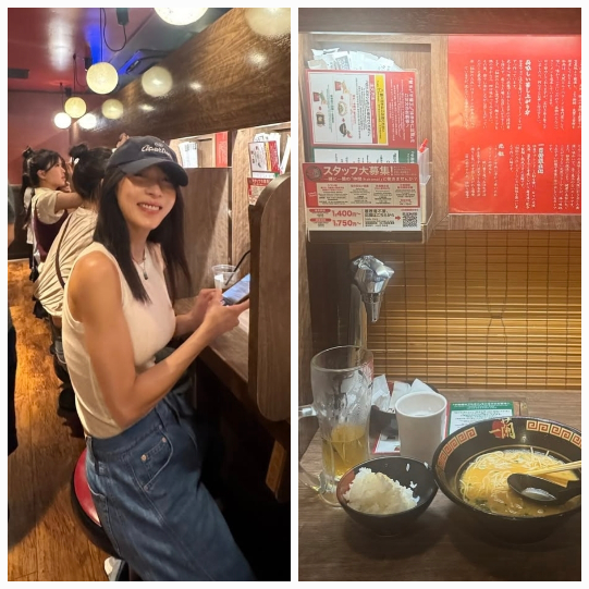공개된 사진 속 하지원은 오사카의 한 유명 라면 전문점에서 혼밥 중인 모습을 담았다.