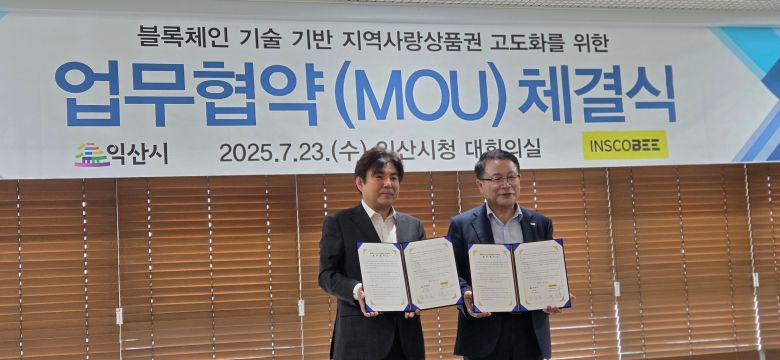 코스피 상장사 인스코비가 전북 익산시와 블록체인 기술 기반 지역사랑상품권 고도화를 위한 전략적 업무협약(MOU)을 체결했다고 22일 밝혔다. 블록체인 기술 기반 지역화폐 발행을 위해 지자체와 업무협약을 맺은 건 이번이 처음이라고 회사 측은 밝혔다.