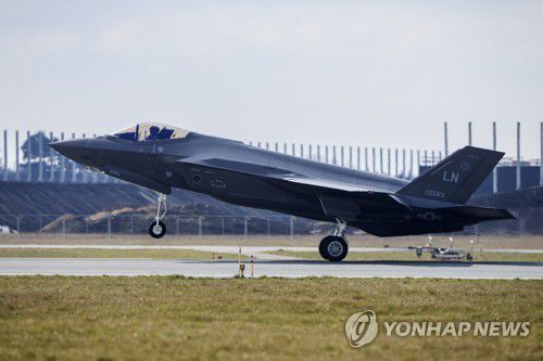 레이컨히스 공군기지에 주둔하는 미 공군 제48 전투비행단의 F-35A 라이트닝II 전투기[EPA 연합뉴스 자료사진 재판매 및 DB 금지]