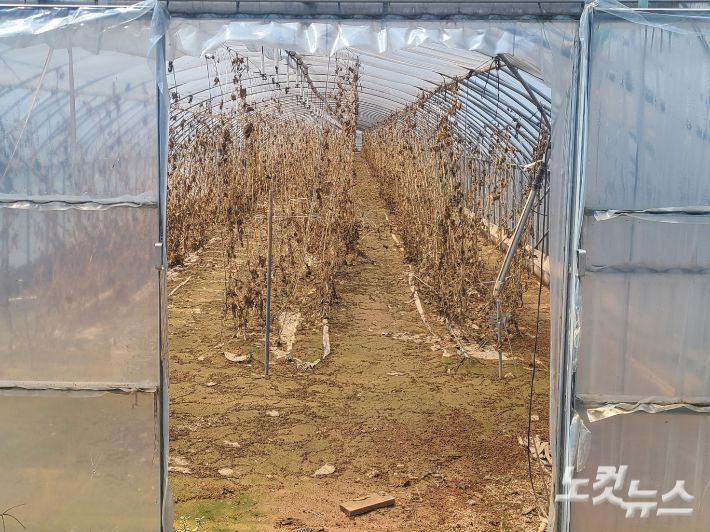 호우 피해를 입은 충남 예산군의 한 비닐하우스. 김정남 기자