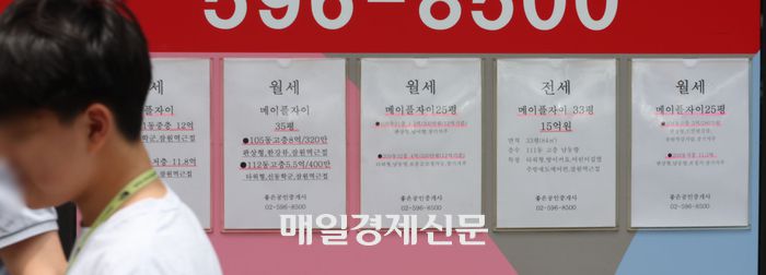지난 20일 서울의 한 재건축 아파트 단지 부동산에 전세와 월세물건들이 안내되고 있다. [이승환기자]