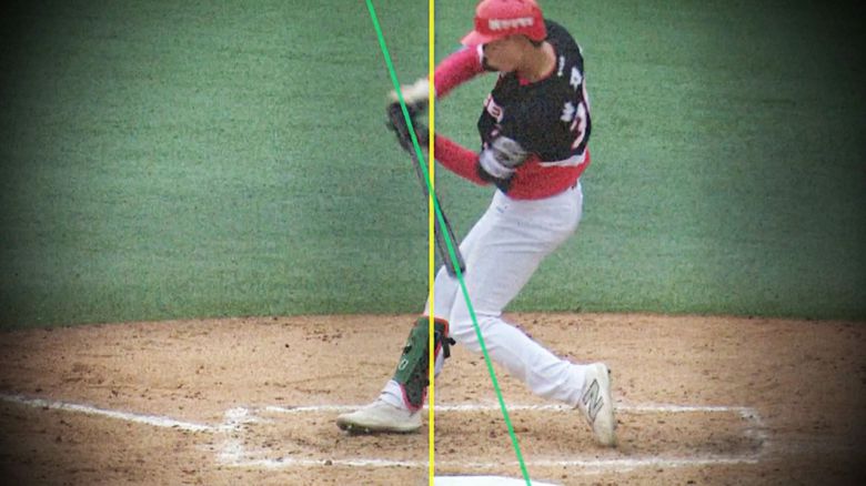 배트 끝 부분의 각도가 홈플레이트 앞면과 평행한 기준선보다 앞으로 넘어가면 스윙으로 판단합니다.