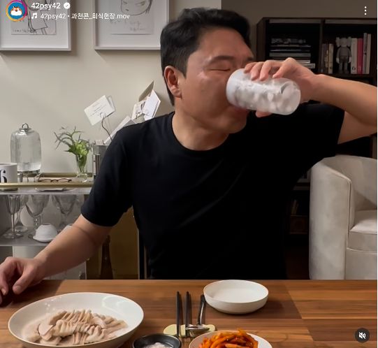 영상 속 싸이는 항정살 수육과 무생채를 먹으며 환한 미소와 특유의 맛 표현을 선보였고, 시원한 소주 원샷 장면에서는 폭풍 스트레이트 주사위 폼으로 팬들을 웃게 했다.