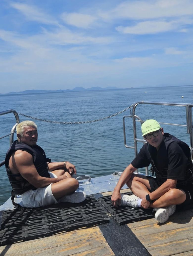 22일 하정우는 자신의 계정에 "커밍 순"이라는 문구와 함께 바다에서 추성훈과 함께 한 사진을 공개햇다.