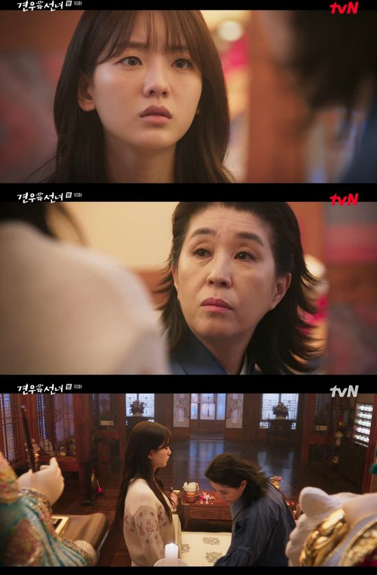 22일 방송된 tvN 월화드라마 '견우와 선녀' 10회에서는 신어머니(김미경 분)가 박성아(조이현)에게 배견우(추영우)를 위해 봉수(추영우)를 지켜야 한다고 밝힌 모습이 그려졌다.