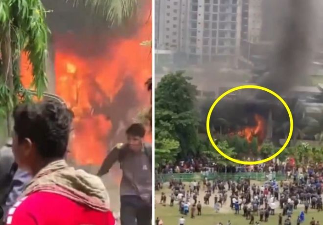 21일(현지시간) 낮 1시 30분쯤 방글라데시에서 공군 훈련기가 민간 학교 건물을 덮치는 사고가 발생해 어린이를 포함한 약 30명이 목숨을 잃었다. 사고 현장 영상 캡처