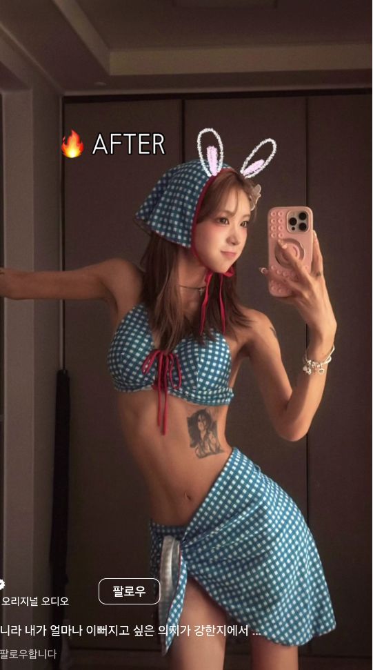특히 또렷해진 턱선, 복근이 드러나는 허리라인, 탄탄한 팔 라인까지, 몸매 변화가 시선을 압도했다.