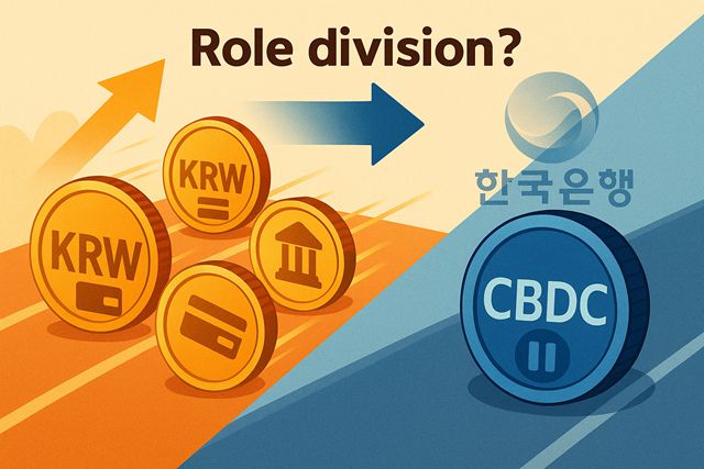 전문가들은 CBDC와 민간 스테이블코인이 '대량 결제 vs 시장 혁신'으로 역할을 나누면 시너지가 날 수 있다고 조언한다. 국제결제은행(BIS)을 비롯해 일본, 싱가포르 등도 유사한 모델을 실험 중이다. 한국은행 역시 CBDC 파일럿 결과를 바탕으로 구체적 방안을 검토하고 있다.