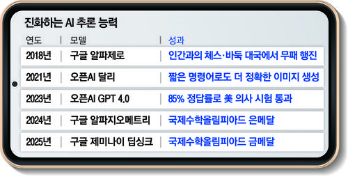 반면 올해 제미나이 딥싱크는 문제를 자연어로 직접 읽고 증명 과정을 서술했다. 스스로 정리를 도출해내며 수학자 수준의 논리성과 체계성을 보여줬다는 평가를 받았다. 이는 AI가 단순한 계산기가 아니라 ‘생각하는 존재’로서 추론 능력을 공식 대회에서 입증한 사례로 꼽힌다.