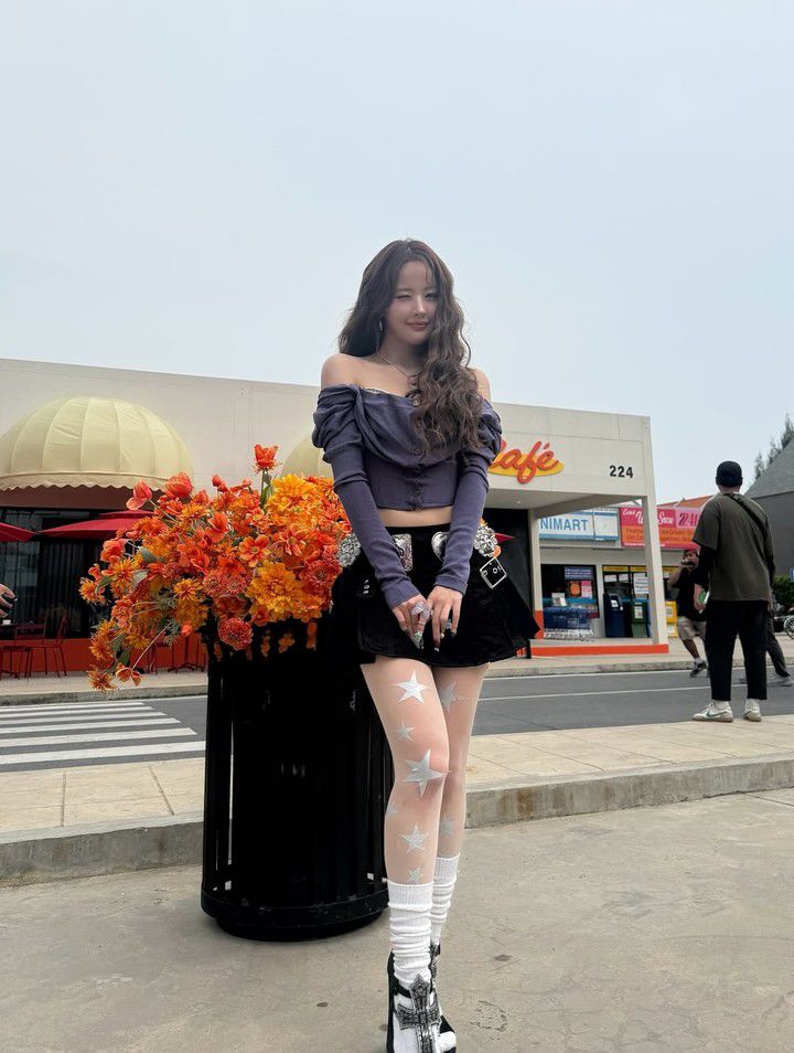 또 다른 사진 속 벨은 야외에서 포즈를 취하며, 옷과 스타일을 잘 살린 멋진 비주얼을 보여주었다. 그녀의 자신감 넘치는 모습은 팬들에게 큰 인기를 끌었다.