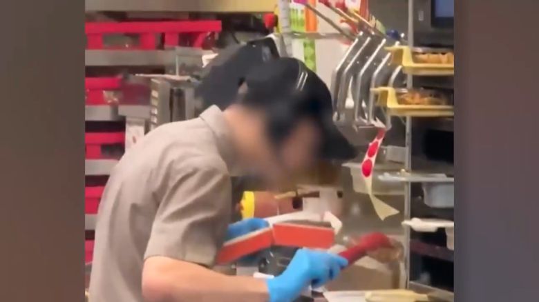 러시아 한 패스트푸드 매장의 직원이 고객에게 나갈 햄버거에 침을 뱉는 영상이 공개돼 논란이 됐습니다.