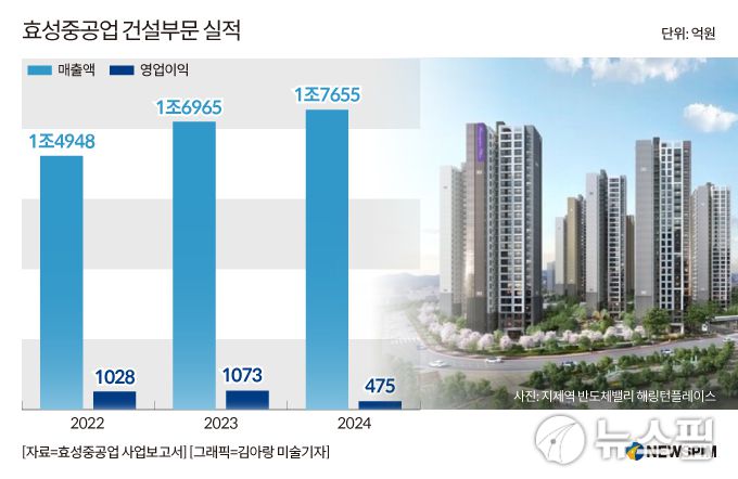 효성중공업 건설부문 실적. [그래픽=김아랑 미술기자] |