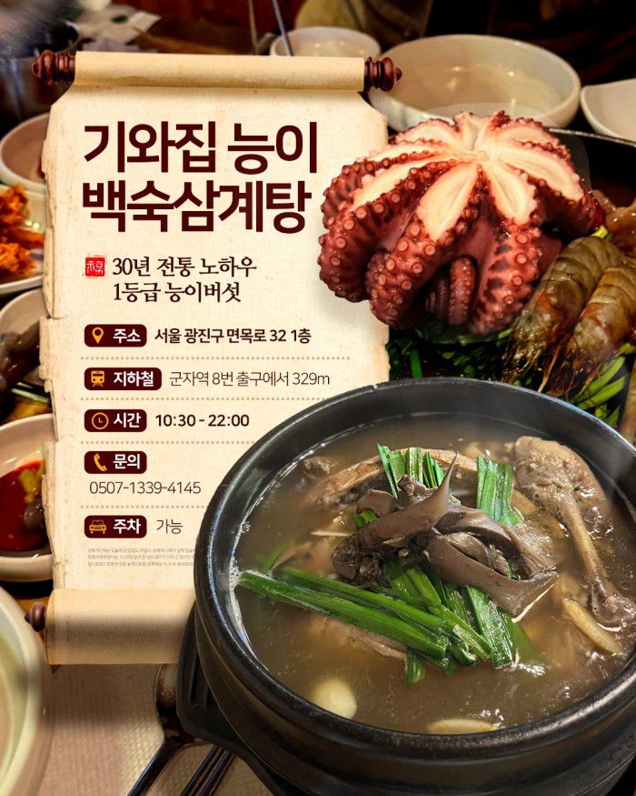 주소 : 서울 광진구 면목로 32 1층 기와집능이백숙
