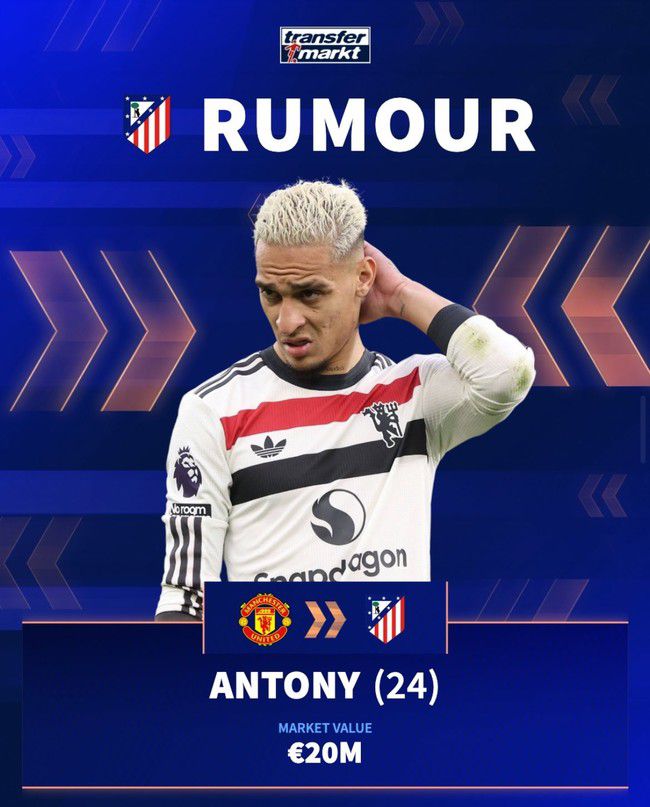 영국 '트라이벌 풋볼'은 '아이뉴스'를 인용하여 23일(한국시간) "레알 베티스는 맨체스터 유나이티드에서 밀려난 안토니를 영입하는 데에 어려움을 겪고 있다. 현재 아틀레티코가 안토니 영입전에서 앞서 나가고 있다. 영입전에서 선두지만, 맨유가 요구하는 3,000만 파운드(560억) 이적료를 맞추어야 할 것이다"라고 전했다.