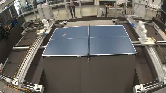 구글의 인공지능(AI) 자회사 구글 딥마인드가 미국 전기전자공학회(IEEE)에서 발간하는 과학기술 전문지 'IEEE 스펙트럼'을 통해 두 개의 로봇팔이 탁구공을 받아 치는 '탁구 로봇'을 21일(현지시간) 선보였다. 딥마인드 영상 캡처 |