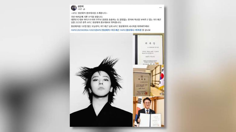 가수 지드래곤(GD)이 2025 경주 APEC 정상회의 홍보대사로 위촉됩니다.