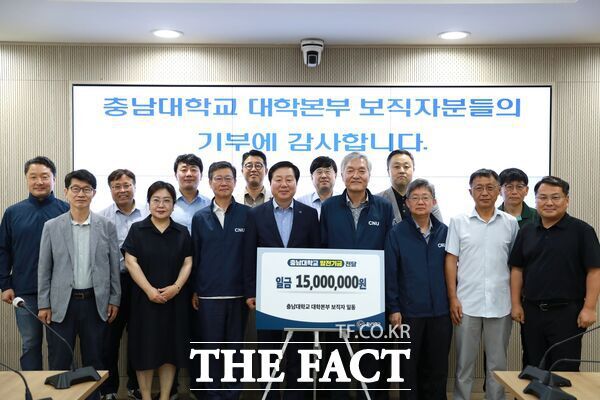 [더팩트ㅣ대전=선치영 기자] 충남대학교는 민윤기 교학부총장 등 대학본부 보직자 17명이 대학 발전기금 1500만 원을 전달했다고 23일 밝혔다.