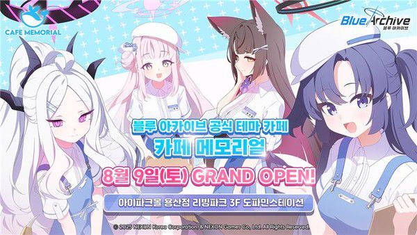 이번에 오픈하는 카페는 서브컬처 게임 '블루 아카이브' 테마를 활용했다. 작품 캐릭터를 소재로 한 콘셉트 식음료와 오리지널 굿즈 등이 판매될 예정이다. 카페 내부에는 대형 포토존, 메시지 월 등이 마련됐다. 벽면에는 특별 영상이 상영돼 다양한 재미를 제공한다.