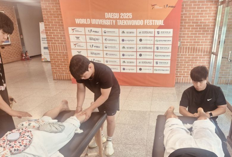 대구한의대학교(총장 변창훈) 한방재활스포츠의학과는 지난 7월 5일부터 8일까지 계명대학교 성서캠퍼스 체육관에서 개최된 ‘2025 대구 세계대학태권도 페스티벌’에 학생 트레이너를 성공적으로 파견했다고 밝혔다.