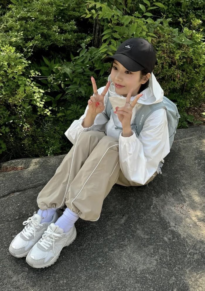 사진 속 권은비는 워터밤에서의 시원스런 노출 패션과는 달리 오버사이즈의 아이보리색 윈드브레이커 재킷과 와이드한 팬츠에 백팩까지 착용해 완벽한 아웃도어 패션을 선보였다.