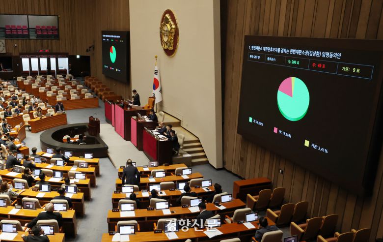 김상환 헌법재판소장 후보자 임명동의안이 23일 국회 본회의를 통과했다. 3개월 넘게 이어진 헌법재판소 7인 체제가 9인 체제로 정상화될 것으로 보인다.
