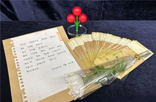 사랑의열매 사회복지공동모금회는 23일 “전날 경남 사무실 앞에 작은 상자 하나가 놓여 있었다”고 밝혔다. 상자 안에는 집중호우 희생자를 기리는 국화꽃 한 송이, 직접 쓴 손 편지, 그리고 현금 500만원이 담긴 봉투가 들어 있었다.