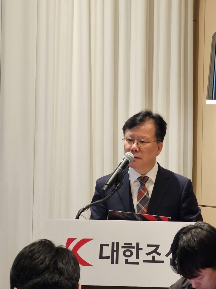 왕삼동 대한조선 대표이사가 지난 17일 오전 서울 여의도 페어몬트 호텔에서 기업공개(IPO) 기자간담회를 진행하고 있다. 사진=IR큐더스 제공