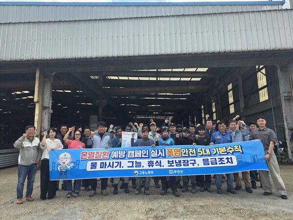 이날 캠페인은 삼향농공단지협의회(회장 임대성)와 현장 근로자들에게 폭염안전 5대 기본 수칙 교육을 진행하고, 온열질환에 대한 경각심을 높여 재해 예방에 적극적으로 동참할 것을 당부했다.