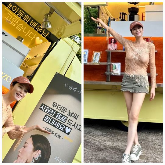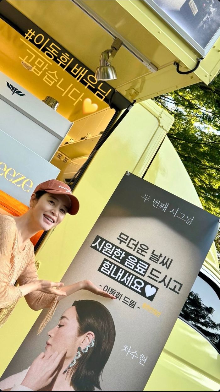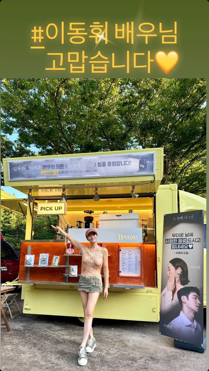 공개된 사진은 드라마 두 번째 시그널 촬영장으로, 이동휘가 보낸 커피차 앞에서 찍은 모습이었다.