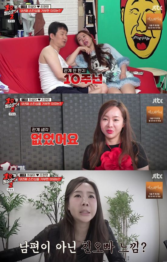 최설아가 "우리 1년 반만 더 있으면 관계 안 한지 10주년이다"라고 하자 조현민은 "9년 동안 이렇게 관계 없는 게 정상이냐"고 토로했다.