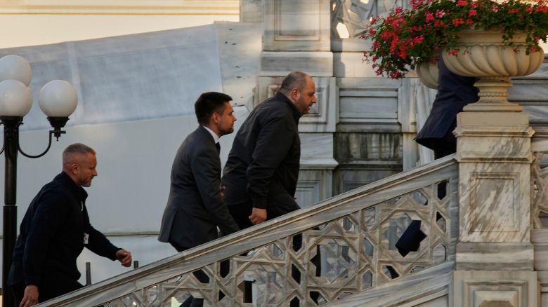 ▲ 23일 오후 루스템 우메로우 우크라이나 국가안보국방위원회(NSDC) 사무총장이 러시아와 평화협상 3차 회담이 열리는 츠라안궁전으로 들어서고 있다.