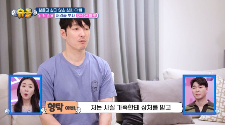 심형탁은 "가족한테 상처를 상처를 받고 죽을 만큼 힘들었다. 죽을 만큼 힘들 때 산소호흡기를 달아준 게 와이프"라고 말했다. 또한 "제가 숨쉴 수 있게, 다시 일어날 수 있게 도와줬다"며 고마움을 표했다. 그러면서 "하루라는 선물을 줬다. 이제는 새롭게 대가족을 이뤄서 행복하게 살았으면 좋겠다"고 털어놓았다.