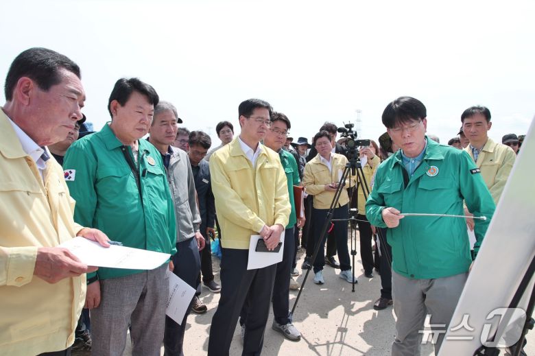 강형석 농식품부 차관이 당진 논콩 침수 피해 현장을 방문해 피해 상황 등을 청취하고 있다.(당진시 제공. 재판매 및 DB금지)2025.7.24/뉴스1 |