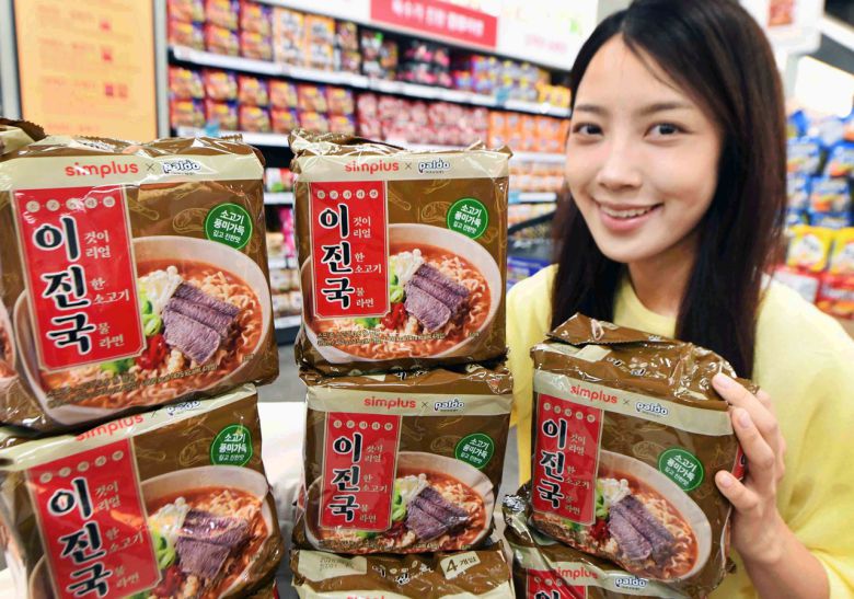 홈플러스는 팔도와 협업해 소고기장국 맛을 살려 제품을 개발했다. 소고기맛 분말과 조미 분말 외에 소고기장국 분말과 엑기스 분말을 추가했다. 면발에는 감자 전분을 넣었다. 4봉이 들어있는 1팩의 가격은 2000원이다.