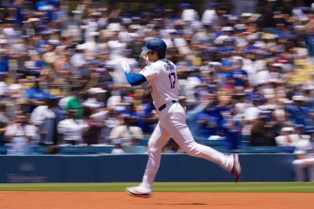 LA 다저스의 오타니 쇼헤이가 24일 미국 캘리포니아주 로스앤젤레스 다저스타디움에서 열린 미네소타전에서 1회 말 1점 홈런(시즌 37호)을 친 후 베이스를 돌고 있다. 로스앤젤레스=AP 뉴시스 |