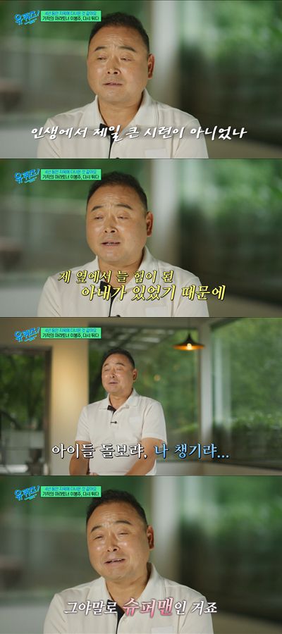 이어 "밤늦게까지도 집안일하랴, 아이들 돌보랴, 또 나 챙기랴 이렇게 하면서 그야말로 슈퍼맨인 거다. 모든 일을 혼자서 다 해야 한다고 하니까. 잠도 제대로 못 자면서 너무 안쓰럽다는 생각을 많이 했다"라고 고마움을 전했다.