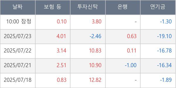 [표] 주요 기관별 순매매량 (단위 만주)
