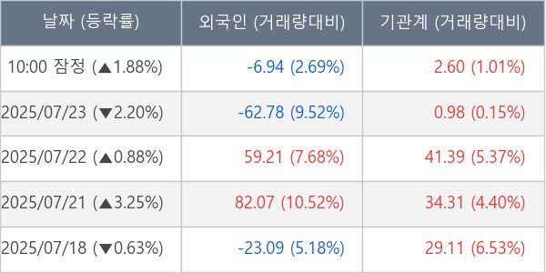 ※ 사모펀드 등 일부 기관의 순매매량은 표시되지 않음