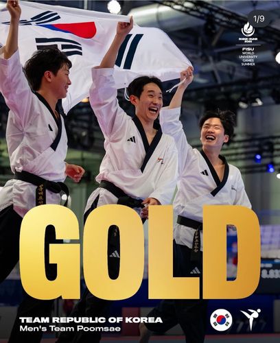 태권도 남자 품새 단체전 금메달을 딴 선수들[라인-루르 U대회 인스타그램 캡처.재판매 및 DB 금지]
