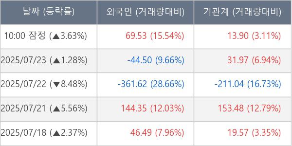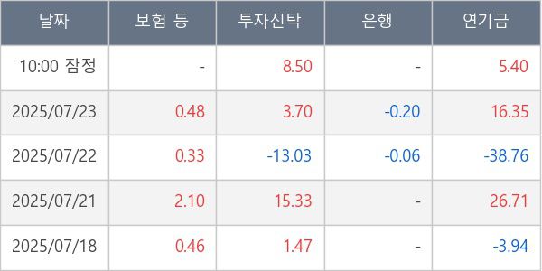 [표] 주요 기관별 순매매량 (단위 만주)