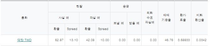 7월 24일 대만환율 46.75원…오전 들어 약세 전환