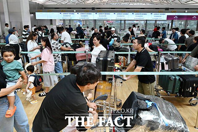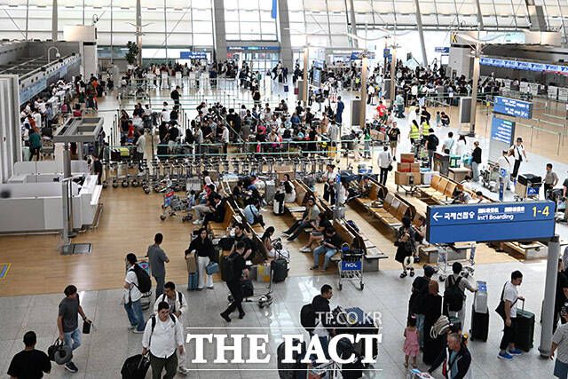 [더팩트ㅣ인천국제공항=남용희 기자] 본격적인 여름 휴가철이 시작된 24일 인천국제공항 제1여객터미널 출국장이 해외여행을 떠나는 여행객들로 북적이고 있다.