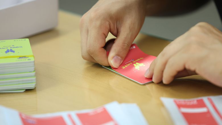 ▲ 24일 광주 북구 한 행정복지센터에서 공무원들이 소비쿠폰 현물카드에 스티커를 붙여 색상을 교체하고 있다.