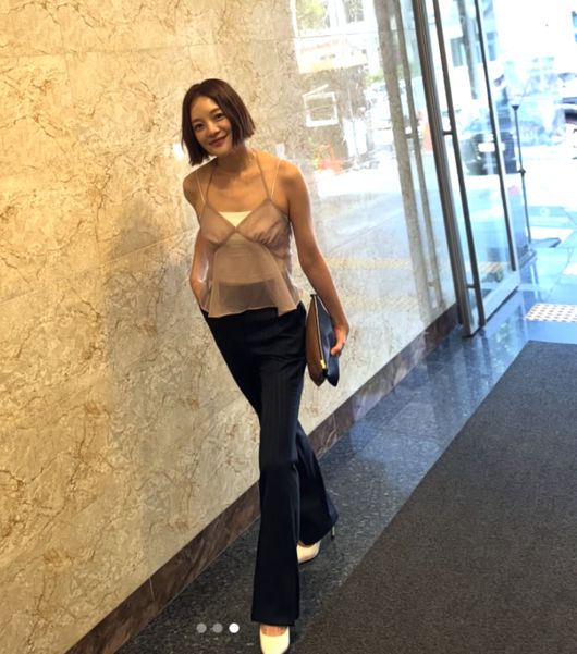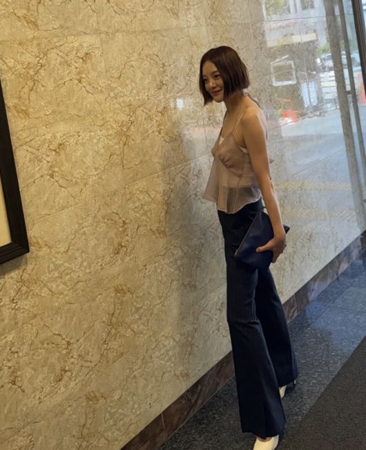 공개된 사진 속 황보라는 얇은 시스루 슬리브리스 탑과 진청 플레어 팬츠를 매치해 도회적인 무드를 연출했다. 여기에 화이트 힐과 네이비 클러치 백을 포인트로 더해 감각적인 여름 스타일링을 완성했다.