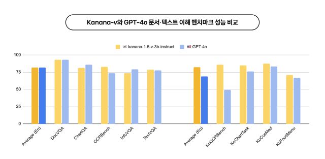 멀티모달 언어모델인 ‘카나나-1.5-v-3b’는 이용자의 질문 의도를 정확히 이해하는 높은 지시 이행(instruction following) 성능과 뛰어난 한국어·영어 이미지 이해 능력을 보유한 것이 특징이다. 경량 모델임에도 이미지로 표현된 한국어와 영어 문서 이해 능력이 글로벌 멀티모달 언어모델 GPT-4o와 견줄 수 있을 정도로 뛰어나다.